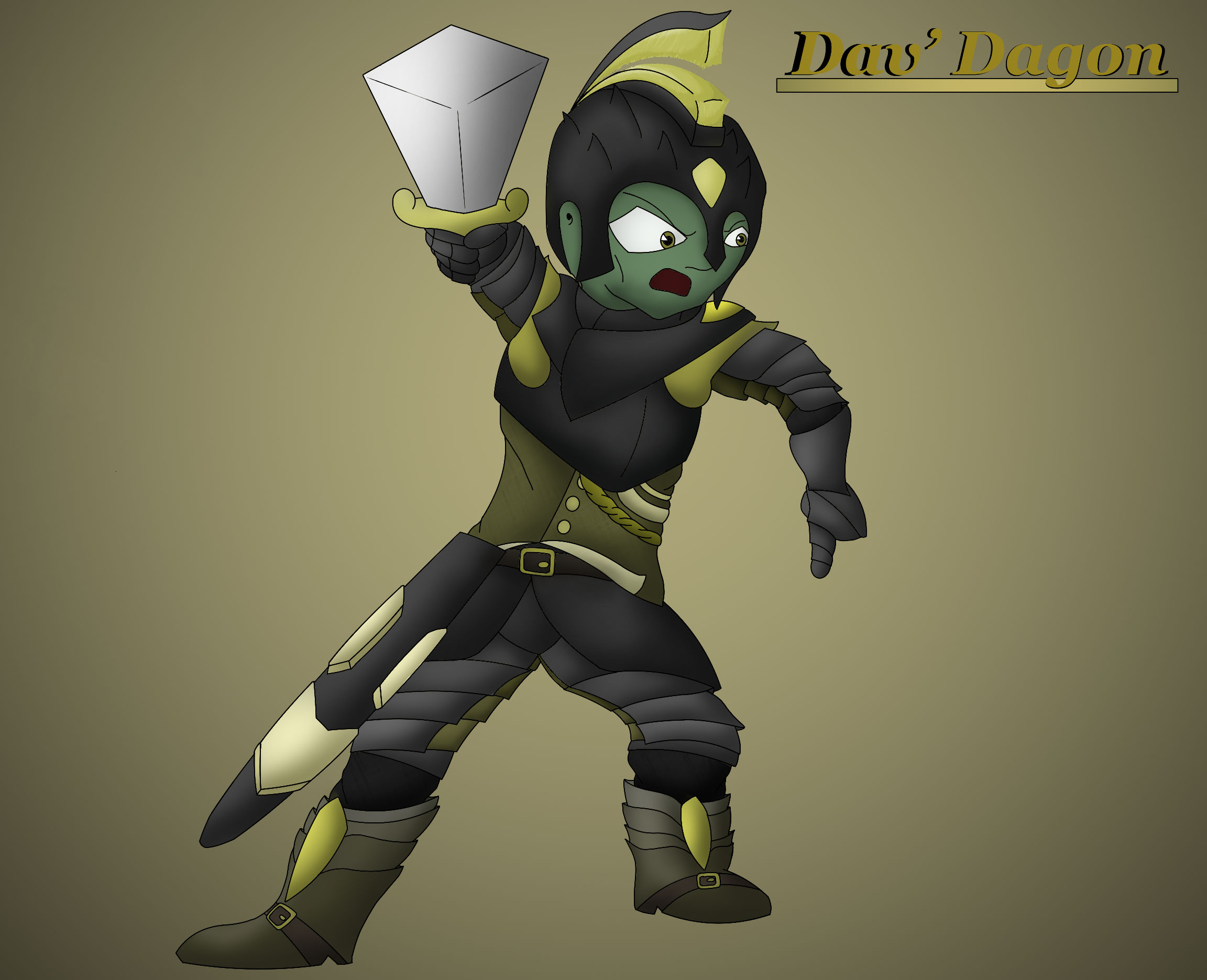 He was appalled, and in an attempt to find redemption, sent his soldiers against Zowizu. When they disobeyed him, Dav' Dagon sent himself to die fighting against his own soldiers in order to help StinkBird and Abben. He killed many and in the end did find the redemption he sought. He was bloodied and dying, but in the end, he was satisfied.