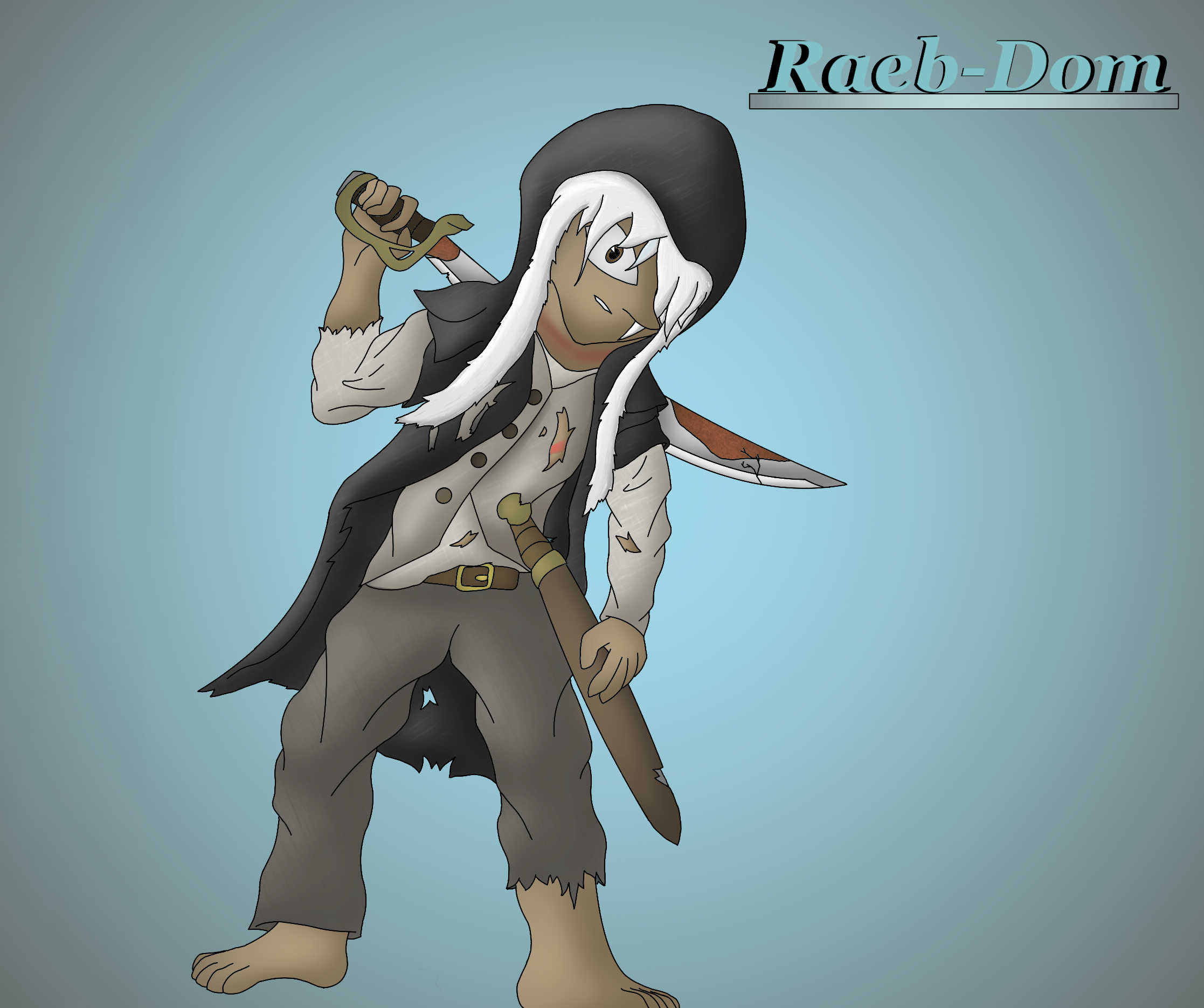 A few more years passed. Raeb-Dom had found a place on the coast to hide as he planned his next target. It was there that the new captain of the SleekPanther came hunting for him, a boy named James. Raeb-Dom welcomed the chance for one more target before he left to fulfill his purpose in other regions. That was until he saw the weapon that the boy wielded: a sword that he had once known as a friend, the Tidal Termoil. Seeing this snapped something in Raeb-Dom, sending him into a fury. While James was a skilled fighter, Raeb-Dom's several millenia of experience gave him the upper hand.