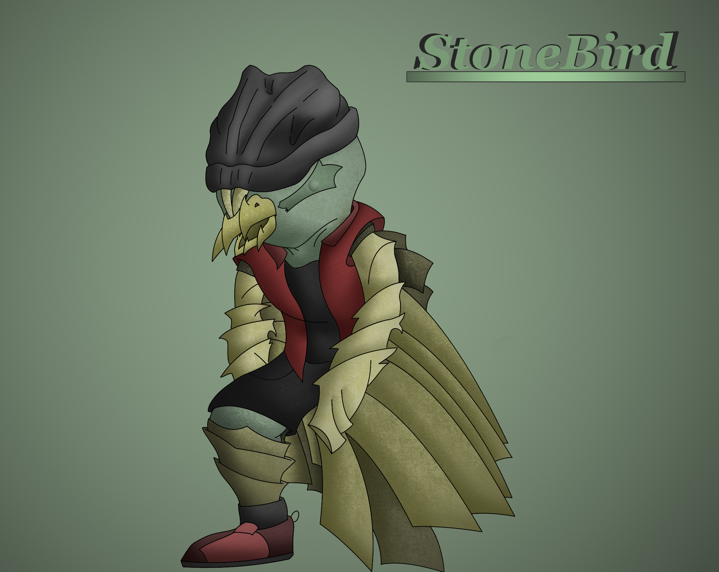 During his employment under Zowizu, he was the perfect servant, soldier, and bodyguard, capable of fighting off any opponent. That was until he was confronted by StinkBird and Abben on their quest to defeat King Zowizu. Together, they managed to overpower StoneBird and kill Zowizu.